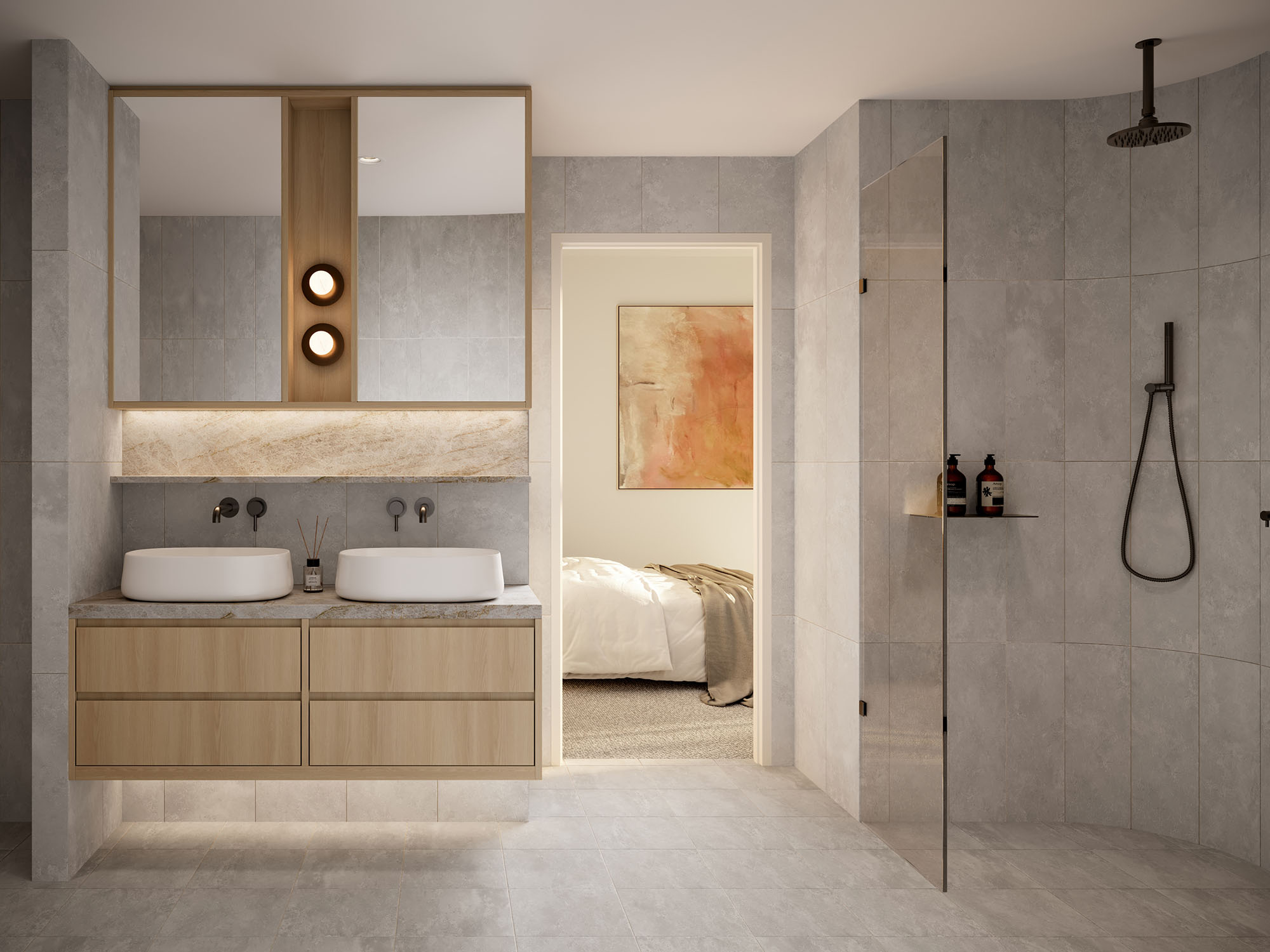 Open plan spaces allow life to flow calmly and naturally. Layered textures create a rich and considered materials palette which soothes and indulges residents, enhancing acoustics and making every surface a pleasure to touch.